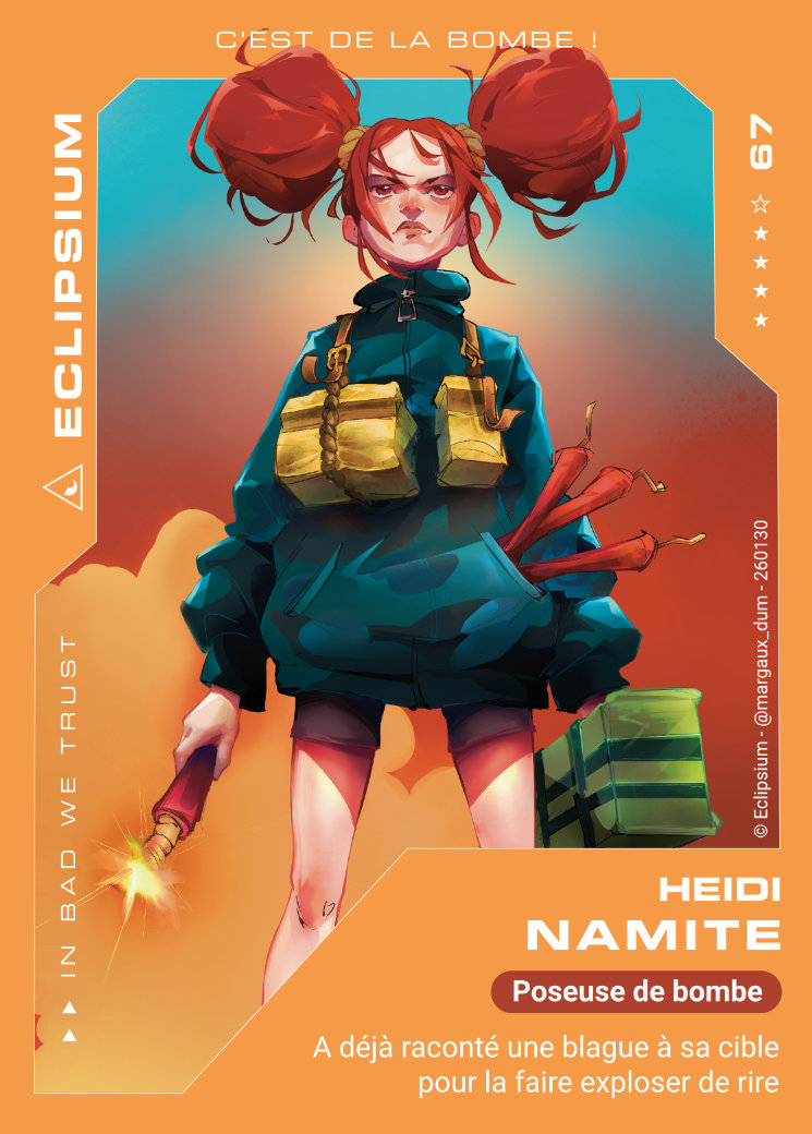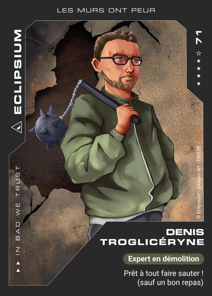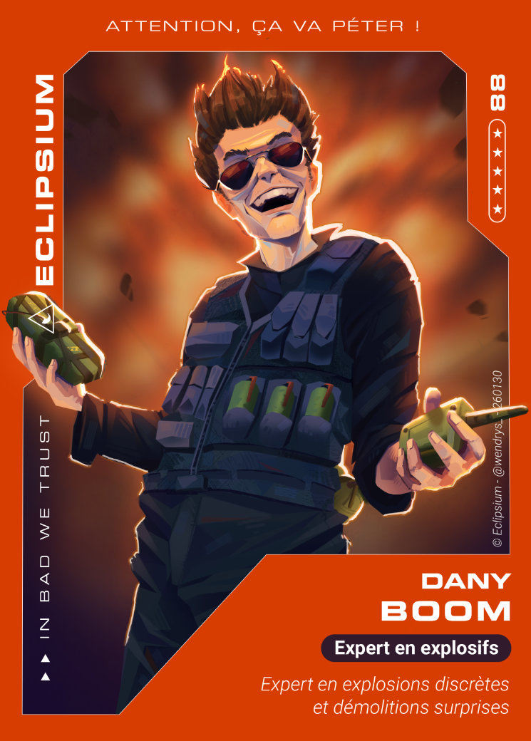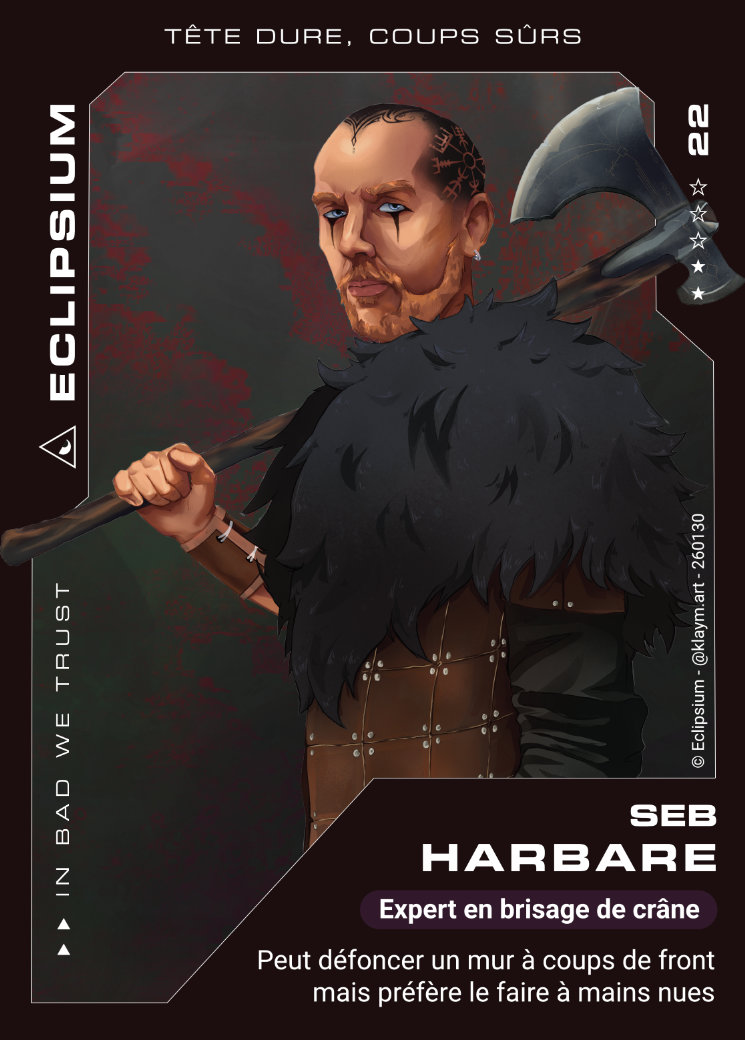 Notre équipe réalise régulièrement des cartes à collectionner des méchants Eclipsium qui sont à gagner durant nos jeux !